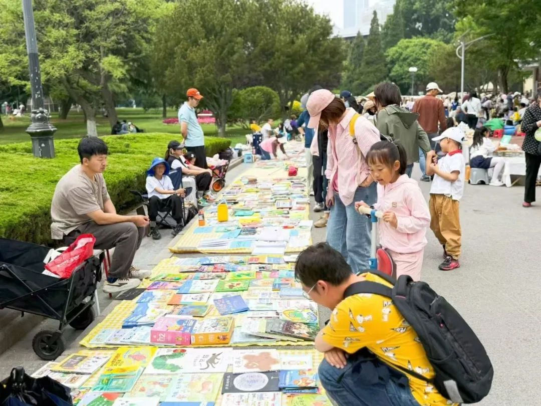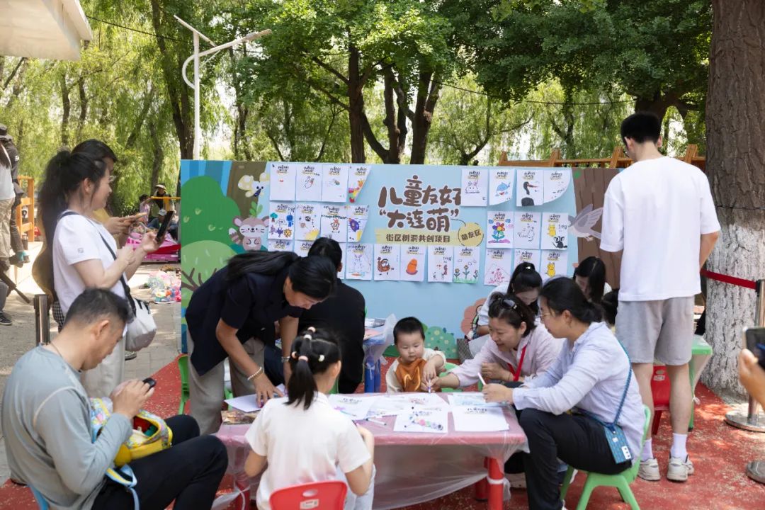 “萌动安全营”区域,亲子运动会热闹非凡,孩子和家长并肩比拼,力争上游,呐喊声和笑声此起彼伏。一棵棵被长颈鹿、熊猫等可爱绘画保护的树洞彰显儿童友好城市的童趣和温暖。二手童书置换大集,闹中取静,爱读书的孩子在一起热情交流。
