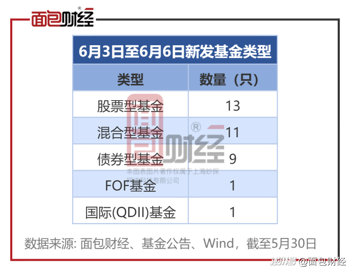 在预计发行的30余只新基金中,股票型基金数量居首,达到13只,混合型基金、债券型基金数量紧随其后,分别为11只、9只。