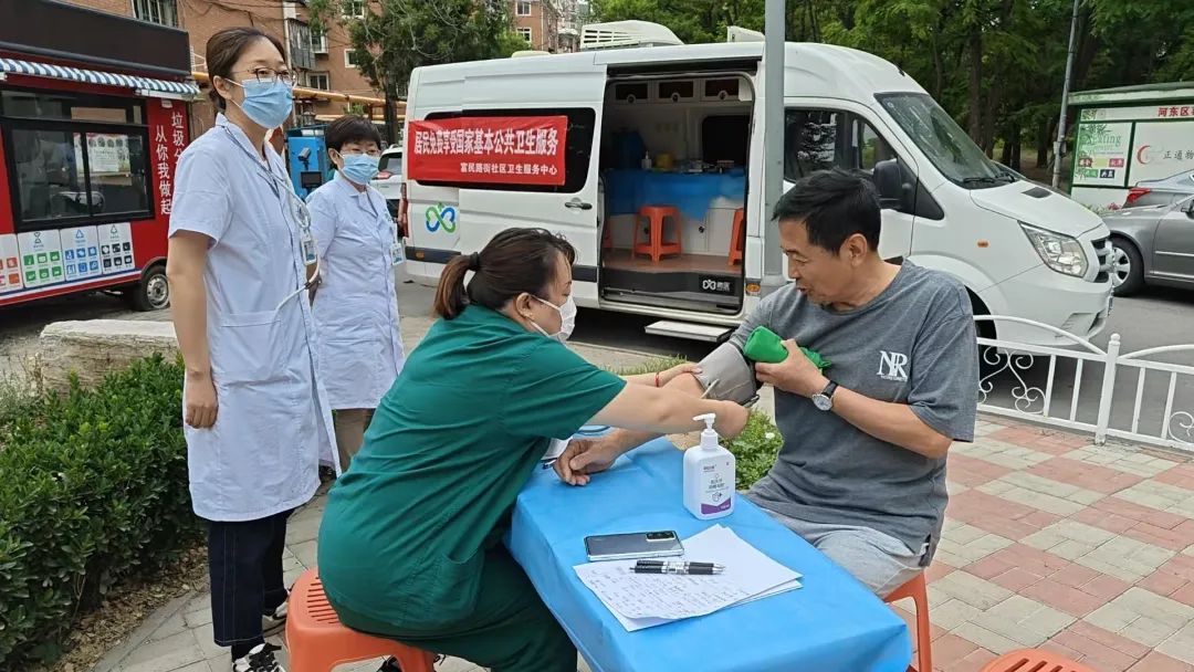 日前,富民路街道社区卫生服务中心在万明里社区口袋公园内设立移动体检点,为居民带来家门口的免费健康服务,切实提升居民的健康水平和生活质量。