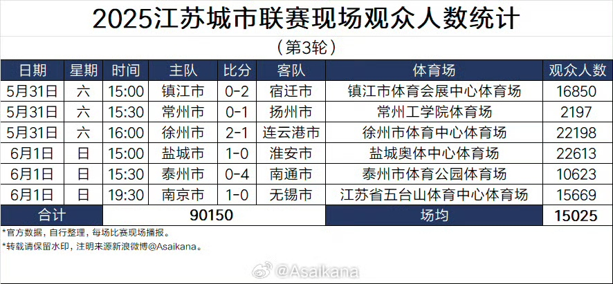此前江苏的尴尬在于,省内已无顶级联赛俱乐部,很多球迷陷入“无队可看”的尴尬境地,苏超为他们提供了一个“支持主队”的窗口。根据德国转会市场网站中国区管理员@Asaikana 统计,5月31日到6月1日,苏超6场比赛场均观赛人数为1.5万人。