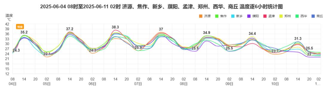 2025年6月4日至10日河南省代表站气温预报