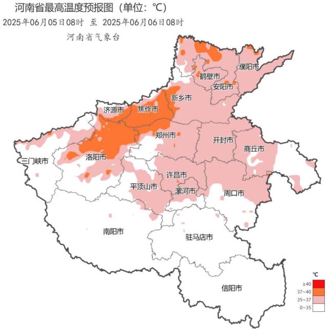 2025年6月5日河南省日最高气温预报