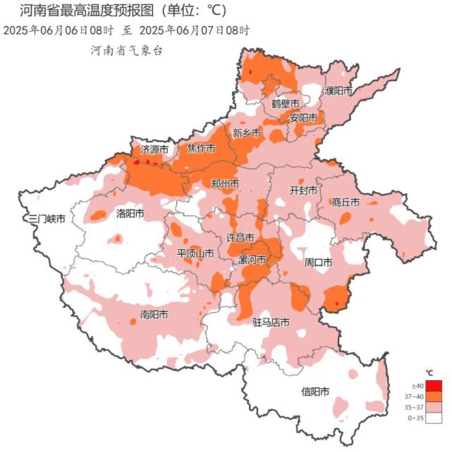 2025年6月6日河南省日最高气温预报