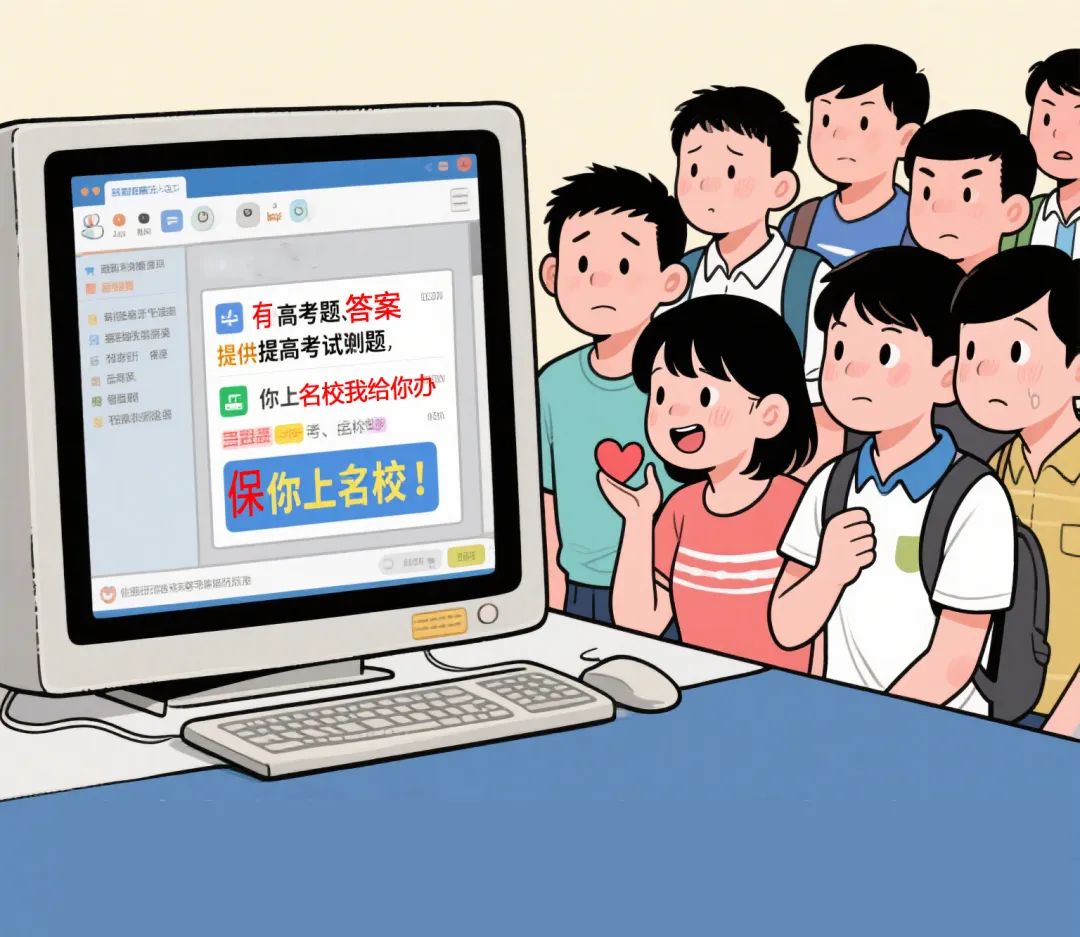 高考期间,有不法分子在网上发布“助考”信息,宣称能为考生提供考试试题、答案的,千万别信,更别参与!