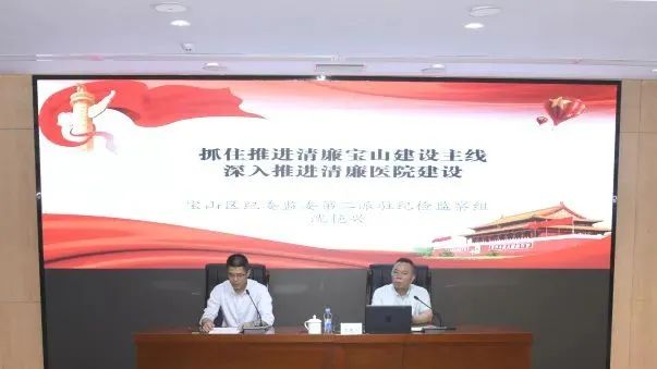 沈组长以《抓住推进清廉宝山建设主线深入推进清廉医院建设》为主题,从三个维度展开讲解。一是要强化认识,深刻领悟建设清廉宝山的重要意义。医疗系统作为服务群众的重要窗口,更应将清廉理念融入日常工作,以优良作风践行医者初心,为宝山书写“北转型”新篇章提供坚强保障;二是正视问题,清醒认识当前清廉医院建设短板弱项。沈组长结合典型案例,重点剖析讲解,提醒党员领导干部引以为戒,规范各项流程,提升纪律意识,加强制度执行,切实增强拒腐防变能力。三是突出重点,全面推进清廉医院建设。沈组长提出要通过完善监督机制、加强廉政教育等措施,筑牢清廉建设根基,着力聚焦群众需求,将中央八项规定要求贯穿清廉医院建设全过程。