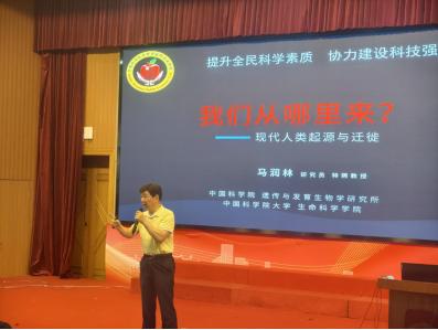 5月22日,南湖区科协开展中科院老科学家科普巡讲活动,组织专家为走进嘉兴市实验初级中学教育集团范蠡湖校区。七年级350余名学生聆听了马润林教授《现代人类起源与迁徙》的主题讲座。