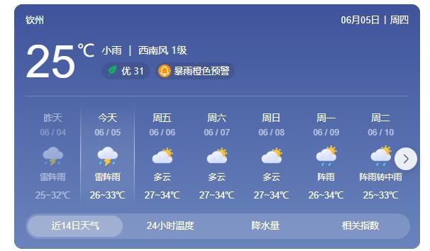 高温+降雨!“桑拿天”将上线,钦州最新天气→