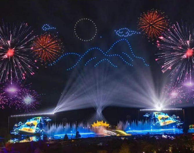 夜晚观看震撼无人机秀,赏绚烂烟火,体验夜游尼山的独特魅力。