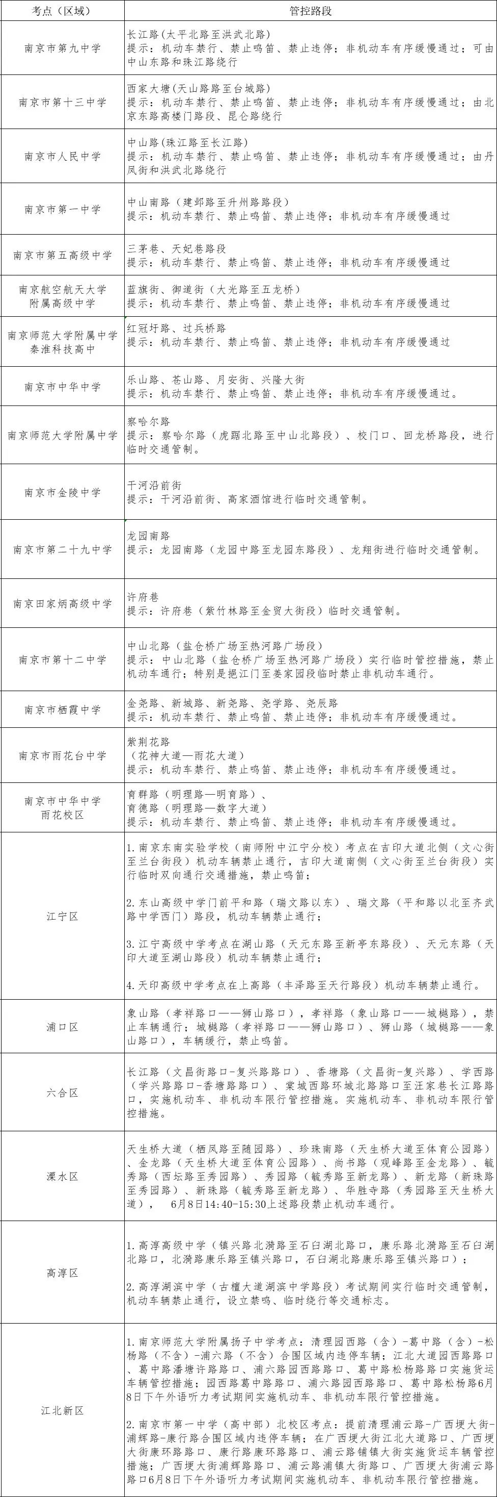 临时管控预计从14时40分左右开始,至听力考试结束后恢复通行,部分考点旁边支路街巷还将临时管控非机动车通行。交管部门提醒,社会车辆经过考点附近应减速慢行,不鸣笛、不猛踩油门或刹车,尽量减少噪声,并主动配合交警指挥,共同创造良好的考试环境。