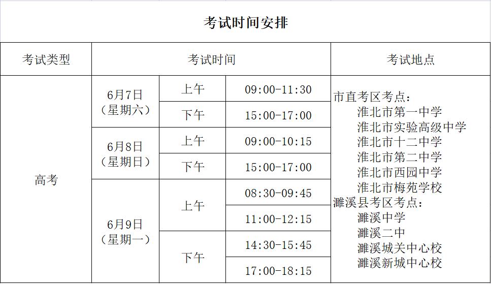 2025年6月7日0时至2025年6月9日19时,在淮北市第一中学、淮北市第二中学、淮北市实验高级中学、淮北市第十二中学、淮北市西园中学、淮北市梅苑学校、濉溪中学、濉溪县第二中学、濉溪县新城中心学校、濉溪县城关中心学校及其周边1000米范围内区域,进行临时空域管制。