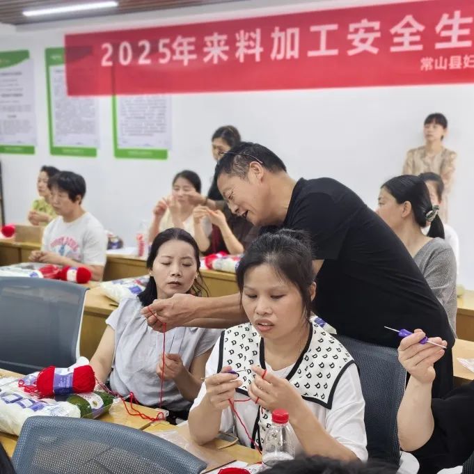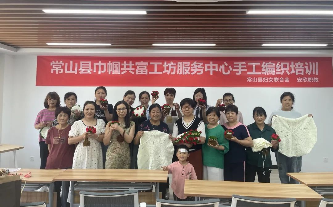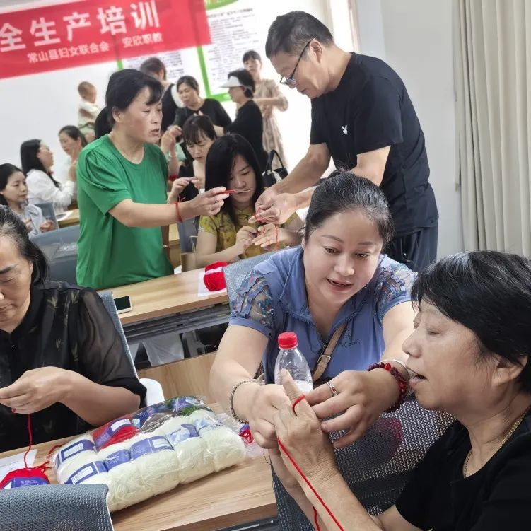 为响应城乡振兴和共同富裕政策号召,助力女性技能提升和就业创业能力,常山县巾帼共富工坊服务中心联合安欣职校于6月4-6日举办手工编织培训。培训邀请“吴大姐”巾帼共富工坊主理人吴争仙授课,全县各村社近60名妇女参加。01