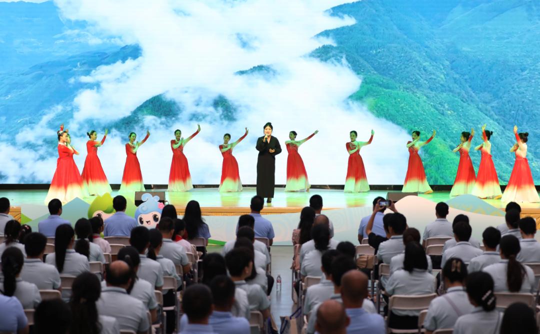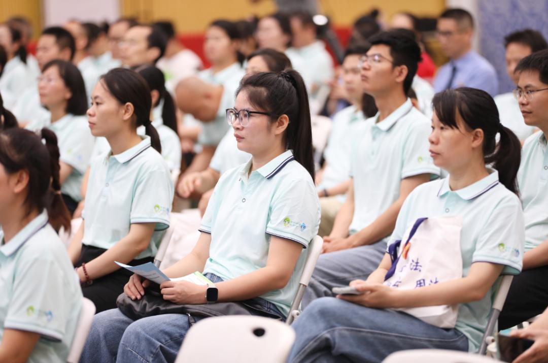 活动现场。活动以歌舞《让中国更美丽》开场,展现了环保人的青春风采,奏响 “美丽中国” 的时代节拍。随后,生态环境志愿者代表宣读 “美丽中国我先行” 倡议,号召全社会守护绿水青山。来宾市培文学校以诗朗诵《一滴水》抛出 “如何让每一滴水焕发生机?如何用行动留下绿水青山?” 的深刻追问,呼吁众人 “守护生命之源,共筑绿色未来”。