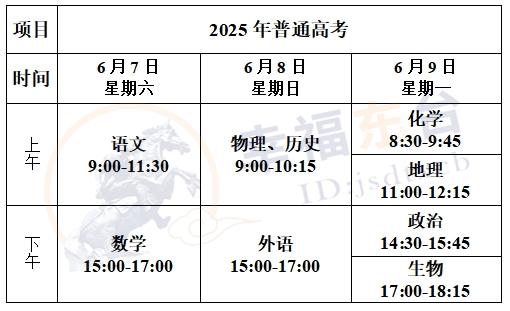 高考考试时间、科目安排