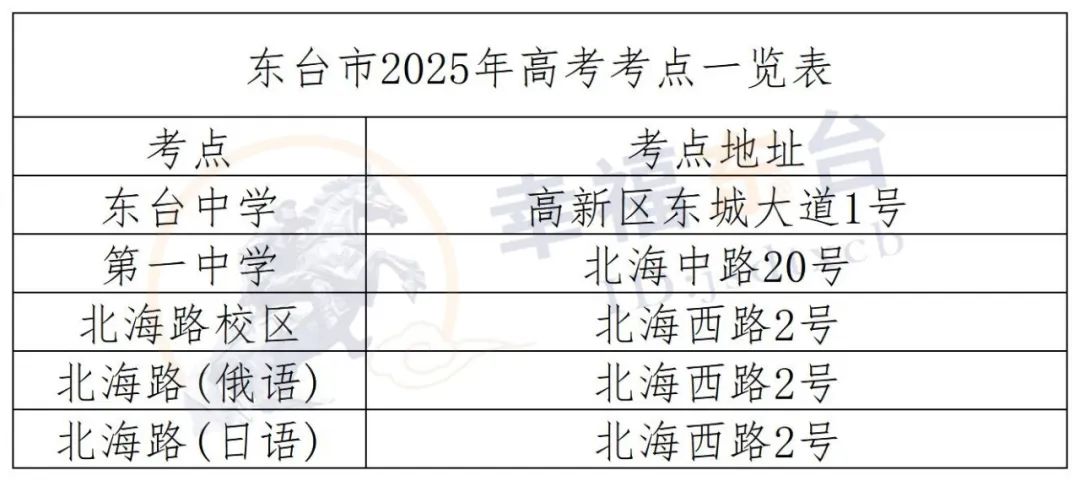 1、考点安排:江苏省东台中学、东台市第一中学 、实验中学中心校区3个考点。
