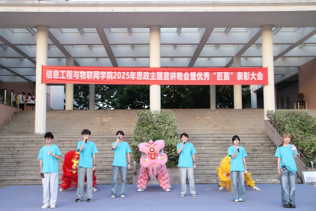 2025年是绿水青山就是金山银山理念提出20周年,6月5日晚,湖州职业技术学院信息工程与物联网学院的青年理论宣讲员们在舞台上面对400余名观众,用情景剧、舞台剧、多口相声等多种方式学习宣传绿水青山就是金山银山理念,引导青年大学生们积极践行绿色发展理念,展现新时代青年的使命担当。