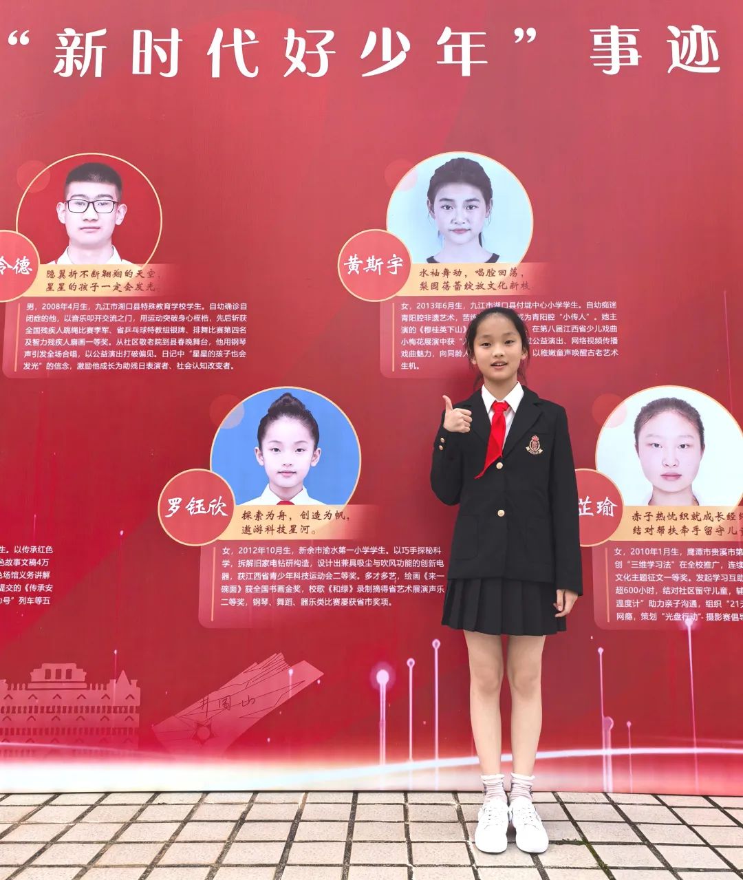 罗钰欣在赣西抗战博物馆门前留影。在渝水一小绿意盎然的校园里,罗钰欣如同一株奋力生长的小树。家庭沃土涵养根基,学校雨露润泽枝干,社会阳光照耀成长方向。当责任、创新与梦想的叶片共同舒展,新时代少年终将以独特光彩,书写属于自己的绚烂篇章。