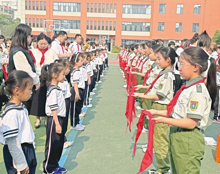 如今,覆盖全市577所中小学的少工委网络已然建成,一方面实施分批入队、分段激励成长体系,严格标志标识使用管理,另一方面开展违规使用少先队标志标识专项排查整治行动。全市配备大队辅导员577人,中队辅导员6161人。少先队辅导员培训列入“青马工程”培养体系,五年来,培训辅导员8400余人次,连续两年荣获河北省少先队辅导员技能大赛优秀组织奖。我市打造38所少年军校,开展国防教育。市青少年宫常态化开展红色经典诵读等活动,7584名校外辅导员助力构建“校内外双循环”育人新格局。开展“红领巾爱祖国”等主题教育,建强“红领巾巡讲团”“红领巾宣讲团”队伍并常态化开展活动。开发“秦小星”研学品牌,设计特色红领巾奖章,在21家市级实践教育基地开展沉浸式学习,使爱党爱国情怀融入少年儿童血脉。