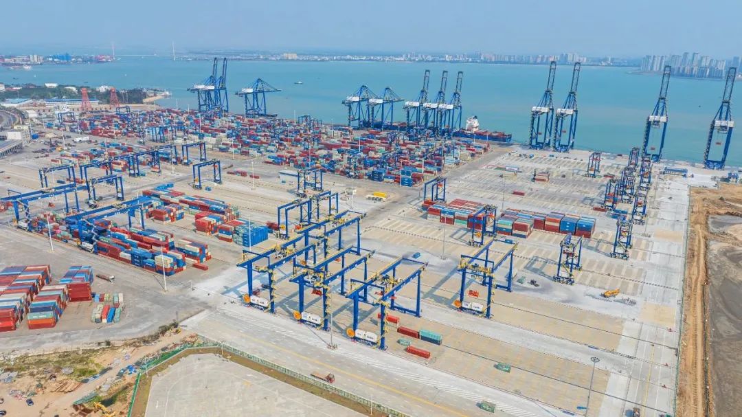 洋浦国际集装箱码头。图源于海南港航近年来,海南实施高度自由便利开放的运输政策,推动建设西部陆海新通道国际航运枢纽和航空枢纽,加快构建自贸港现代综合交通运输体系,全力护航运输来往自由便利。