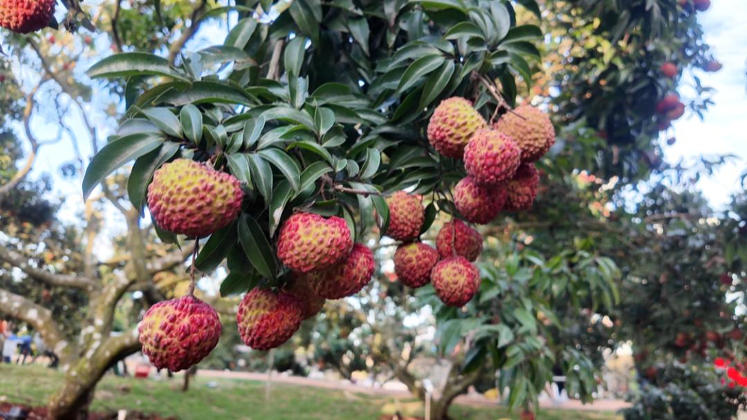 已经成熟的火山荔枝王。南海网、南国都市报记者 郑光平 摄得益于越发便捷的对外交通网络,这批荔枝从海口美兰国际机场上飞机,飞往太平洋对岸的温哥华,让最新鲜的火山荔枝王荔枝可以最快速度摆上外国客户的餐桌。