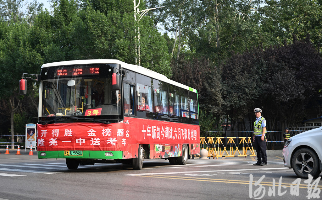6月7日,隆尧县交警在引导送考车辆。河北日报记者 赵永辉摄