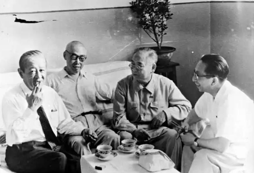 1956年5月,日中文化交流协会理事长中岛健藏率领代表团访华。左起:中岛健藏、田汉、欧阳予倩、西园寺公一。在会见中岛的时候,廖承志也在座,他说了一句“中岛是日本有名的集邮家”。会后,周总理就对夏衍说:“你不是也喜欢集邮吗?可以把你的集邮请他看看,再送他一套新中国的邮票,这比送什么礼品都会更让他高兴。”