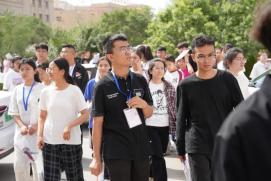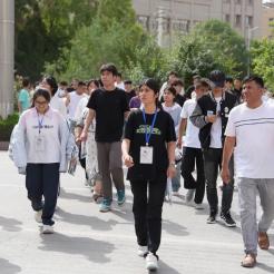 和家长一样关注考生的还有陪伴了他们三年的带课老师们,他们早早来到考点外,用击掌、拥抱等方式为学生鼓励减压。喀什市第五中学老师阿依娜扎尔·艾尔肯细心叮嘱自己的学生:“要保持好心态、以平常心应对,相信自己,一定能取得理想的成绩。”