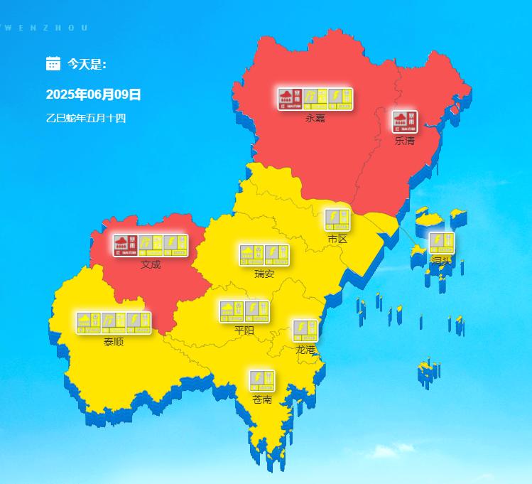 温州多地发布暴雨、雷电、雷暴大风预警