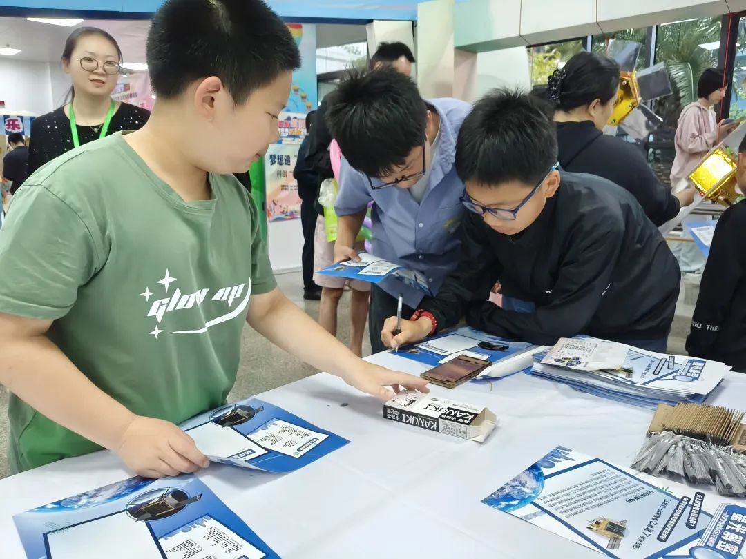 “星梦远航”“星梦解密”以虚拟星球探索激发好奇心;“创客集市”展示并义卖学生作品,传递科技公益理念;“快乐盲盒”提供科技小制作兑换;“智控飞天梦”带来无人机展览与飞行体验。