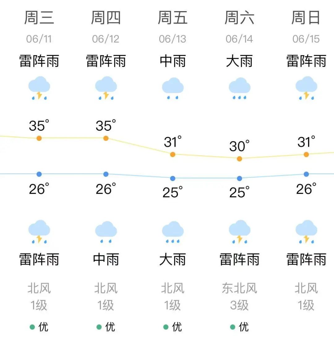 6月11日起随热带系统发展靠近,雷雨渐趋明显;6月14-15日有一次大到暴雨局部大暴雨降水过程。