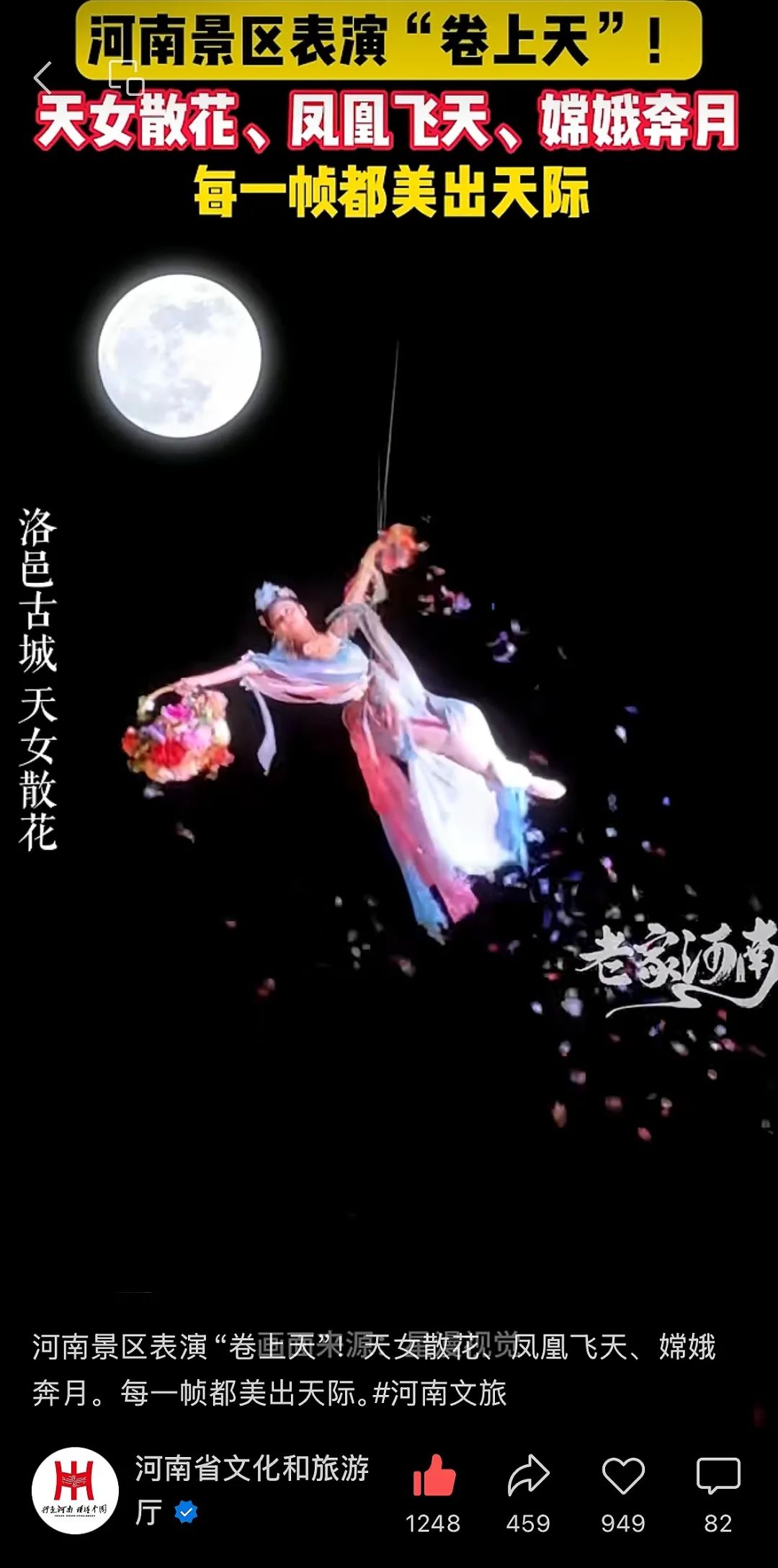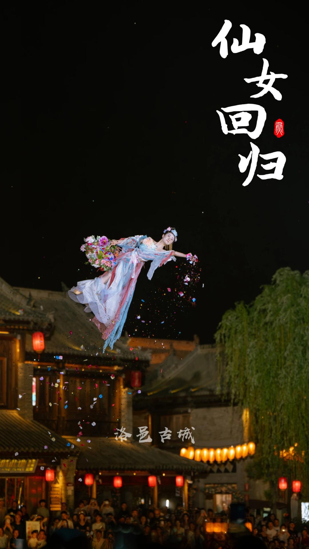 云中惊鸿落,仙子降人间洛邑古城的天女散花表演