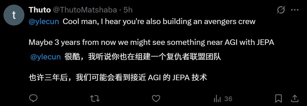 「听说,你也在组建一个复仇者联盟?三年后,我们或许会看到接近AGI的JEPA技术。」