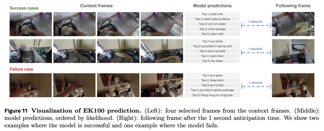 它能够从第一人称视频,预测出未来1秒将执行的动作。与语言模型结合后,它还在视频问答基准测试,如Perception Test和TempCompass中,创下了最新记录。