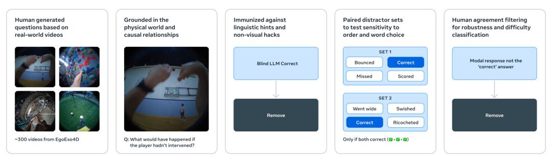 同时,Meta还同步发布了三个全新基准评估集,帮助评估模型在视频中的世界理解与推理能力。