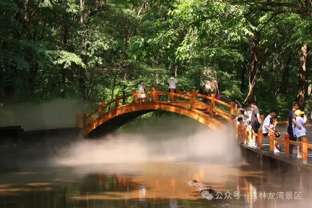 吉林龙湾景区现为国家AAAA级旅游景区,景区内原始森林覆盖率达90%以上。空气中负氧离子含量平均每立方厘米高达8000个,素有天然森林氧吧之称。这里夏季平均气温22°C,是避暑、康养、休闲旅游的最佳旅游地。