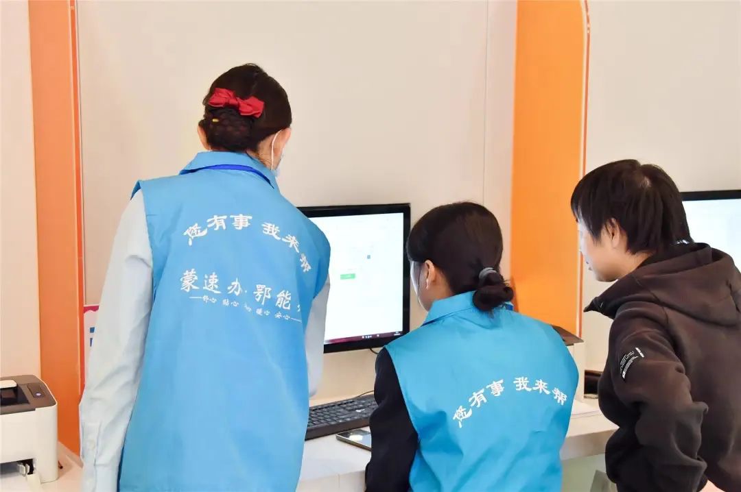 在东胜区政务服务“蓝马甲”专区,61人的专业化帮办团队成了“活地图”:他们通过行政办事员资格考试,熟记1000余项审批要点,每天“晨会讲堂”研讨案例;帮老人使用自助终端、为企业预审材料,30秒内给出解决方案;《综合窗口人员服务文明用语手册》里,38项操作规范写满“请”“谢谢”的细节。