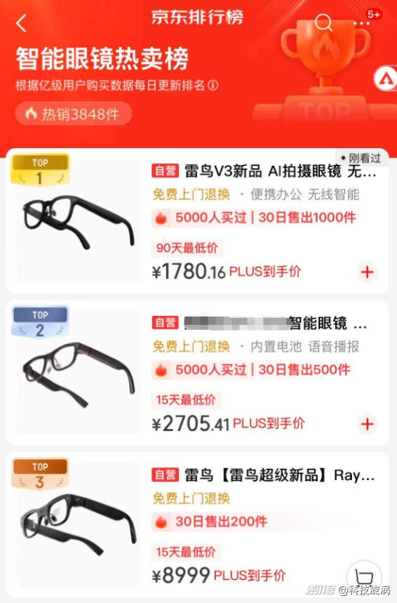 我身边不少朋友,以前聊起智能眼镜,总觉得那玩意儿离我们太远,不是概念机就是"黑科技",价格高得离谱,功能也鸡肋。但现在,情况似乎有点不一样了。京东热卖榜上,几千块的AI眼镜已经卖得风生水起,甚至还有不到两千块的平价款。特别是雷鸟创新,他们的两款AI眼镜产品竟然占据了京东AI眼镜销量榜前三名中的两席,这说明什么?说明这玩意儿,真的开始走进寻常百姓家了。