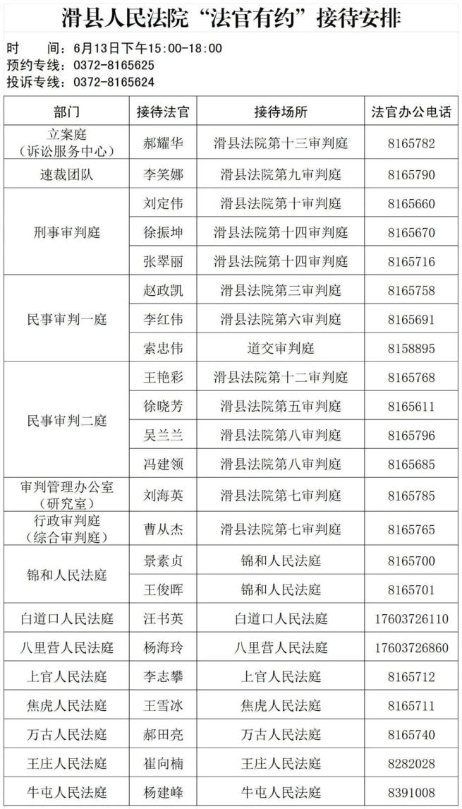 公告丨滑县人民法院“法官有约”固定接待日,时间、地点看过来→