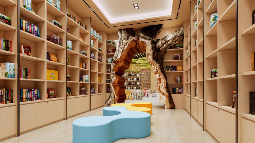 长颈鹿凳、蘑菇桌、云朵沙发错落分布