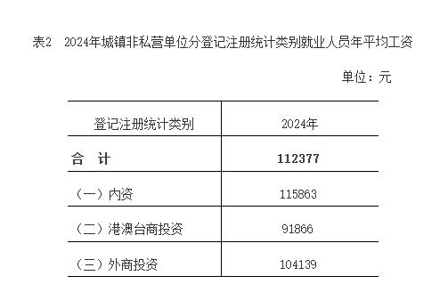 按行业门类、登记注册统计类别分组的城镇非私营单位就业人员年平均工资分别详见表1、表2。
