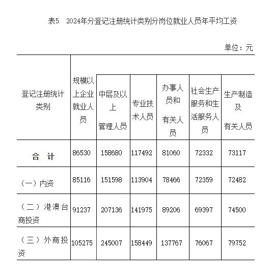按行业门类、登记注册统计类别分组的规模以上企业就业人员年平均工资分别详见表4、表5。