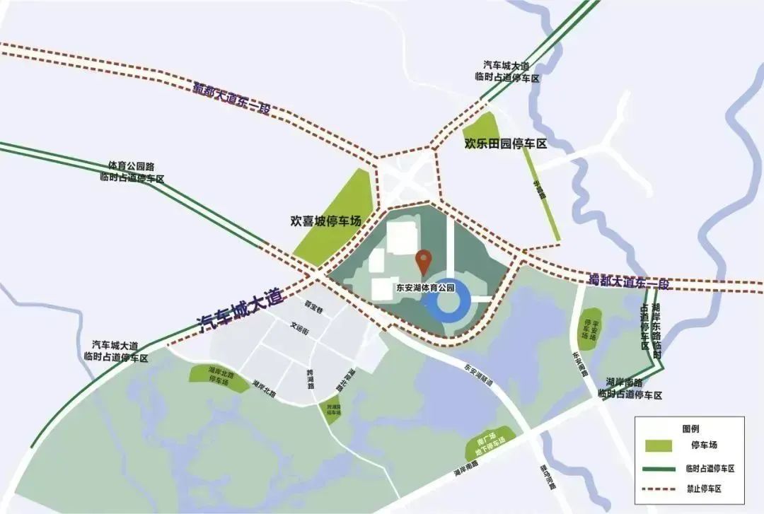 东安湖体育公园周边停车资源有限,为确保演唱会期间观众车辆停放有序,建议采取分区停放的方式,并合理规划行车路线。