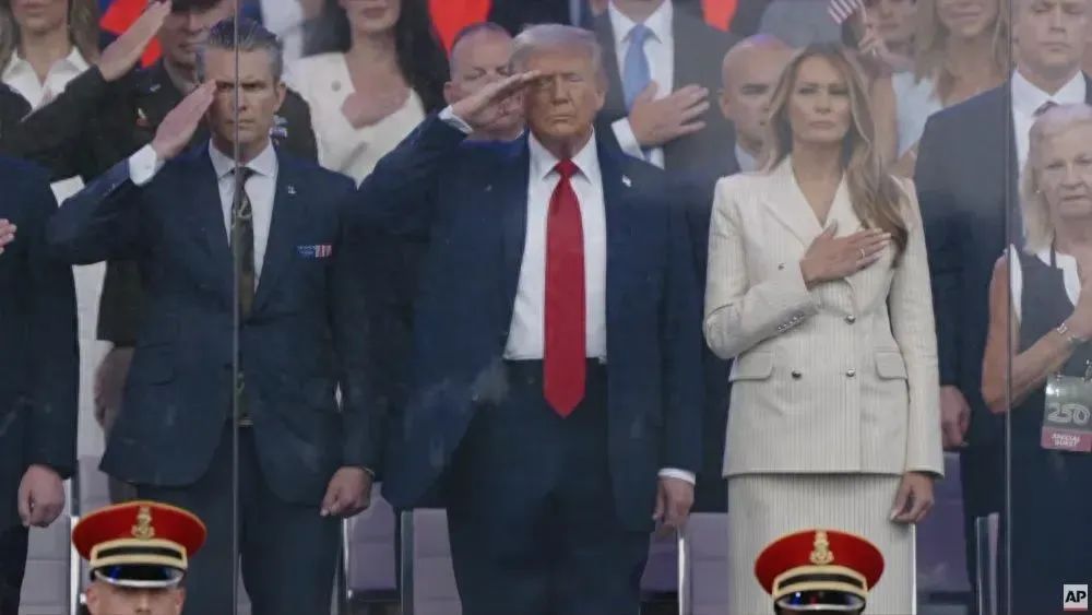 特朗普生日阅兵,隔着防弹玻璃向士兵敬礼