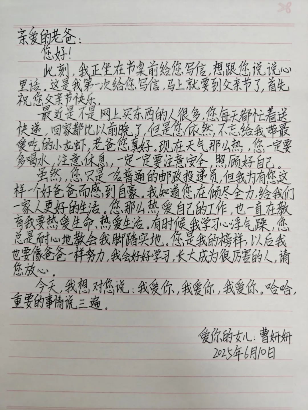 收到来自小棉袄的一封信,有惊喜,有感动,也有愧疚。谢谢我的女儿,这是爸爸收到最好的礼物。