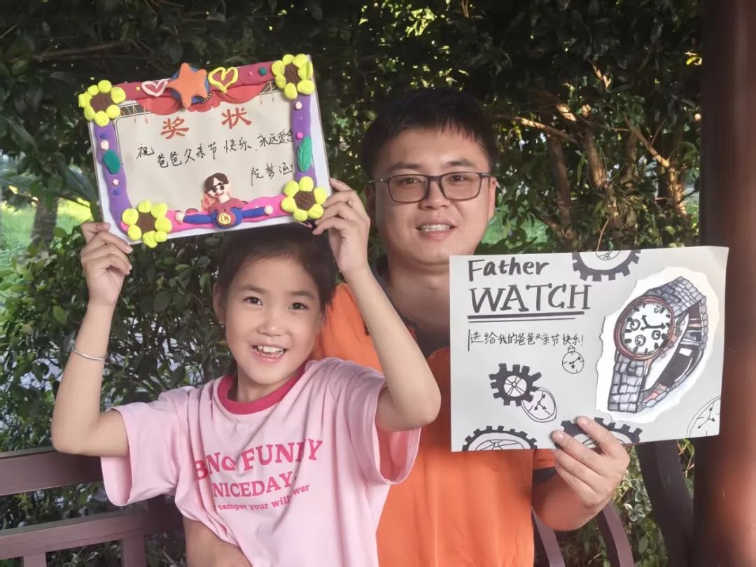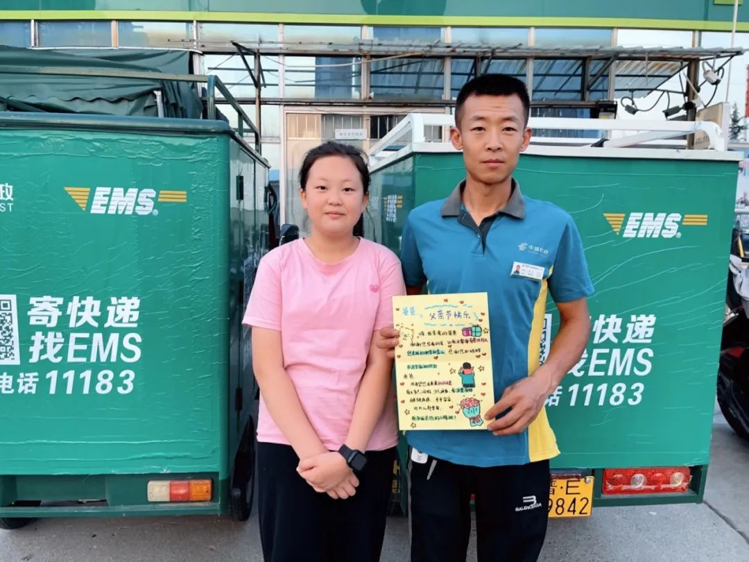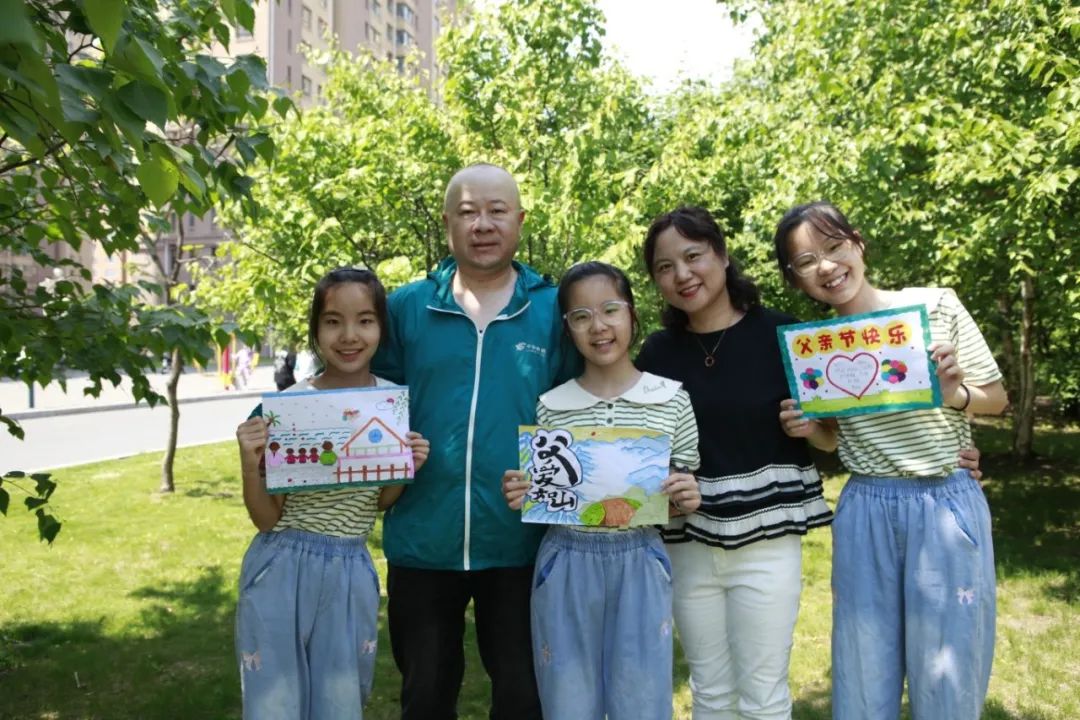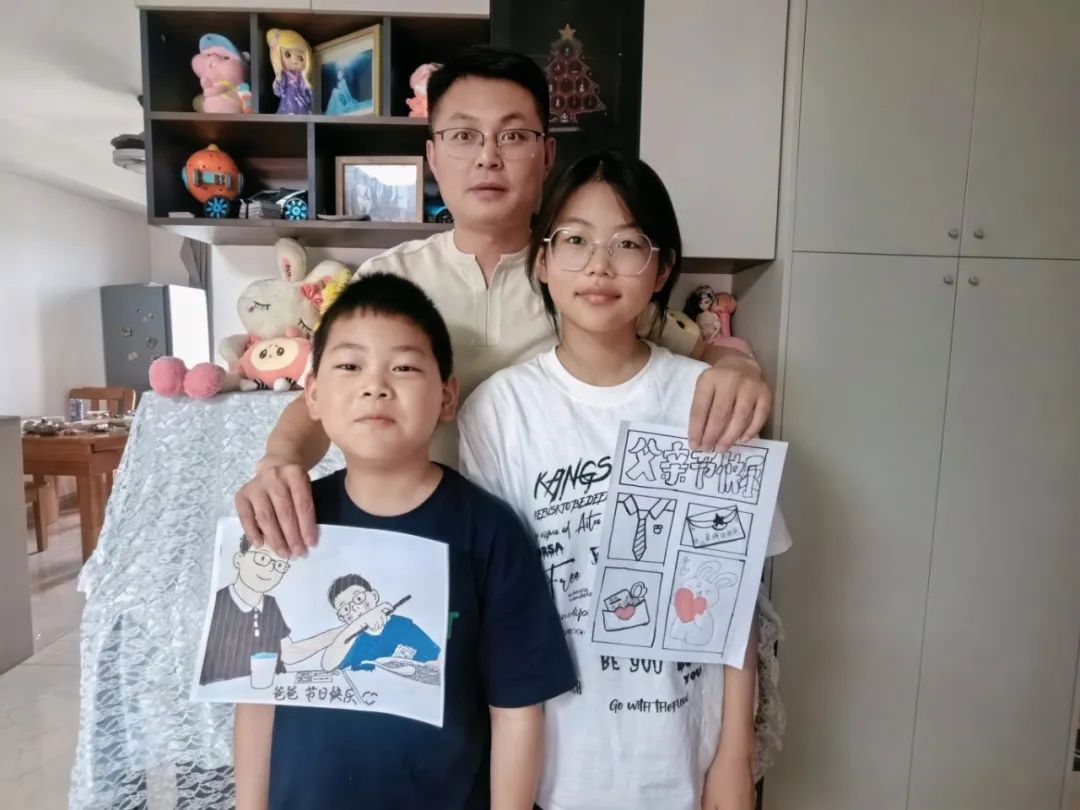 当我和同为邮政人的妻子一起下班走进楼下小区时,三胞胎姐妹一起向我们跑过来祝我父亲节快乐,并送上了亲手准备的画作,我特别感动!