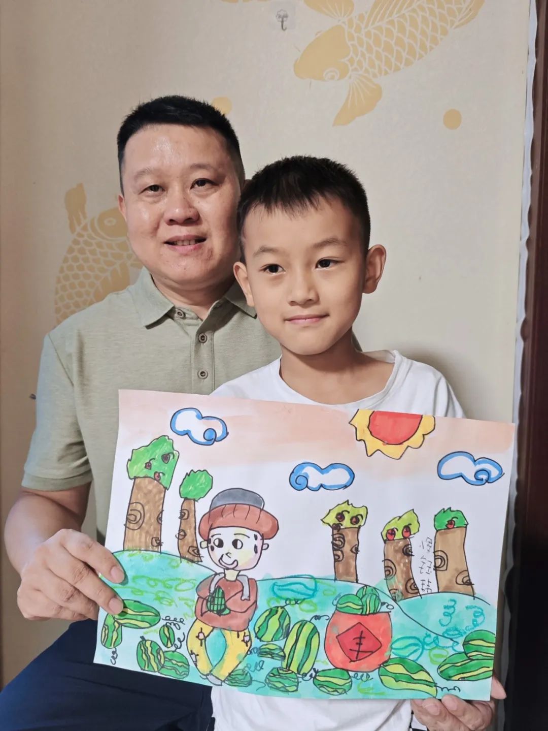 那些帮农户销出去的西瓜啊,原来都被孩子悄悄收进了画里,这礼物沉甸甸的,让我这当父亲的心里比嚼了蜜瓤西瓜还要甜。