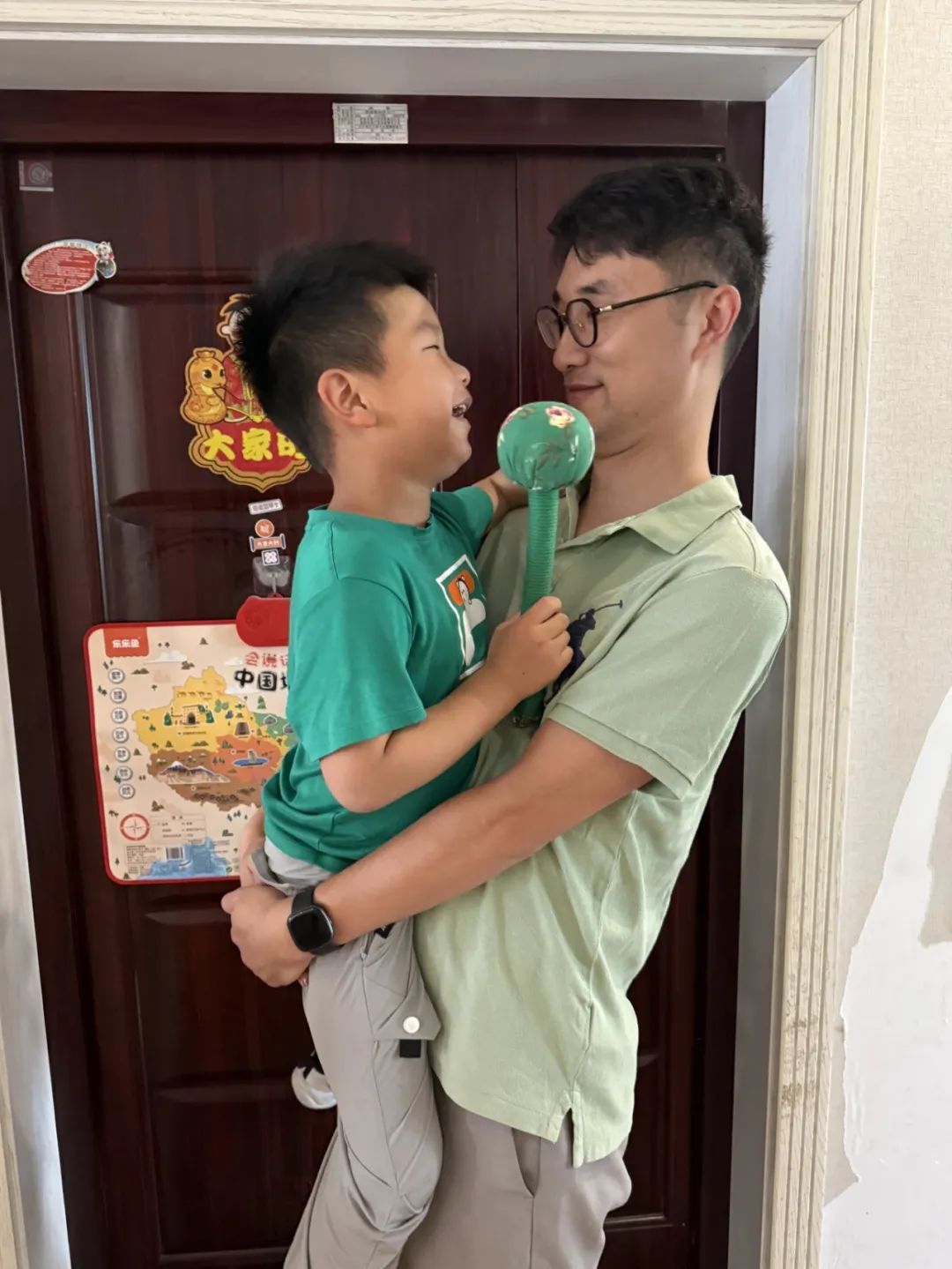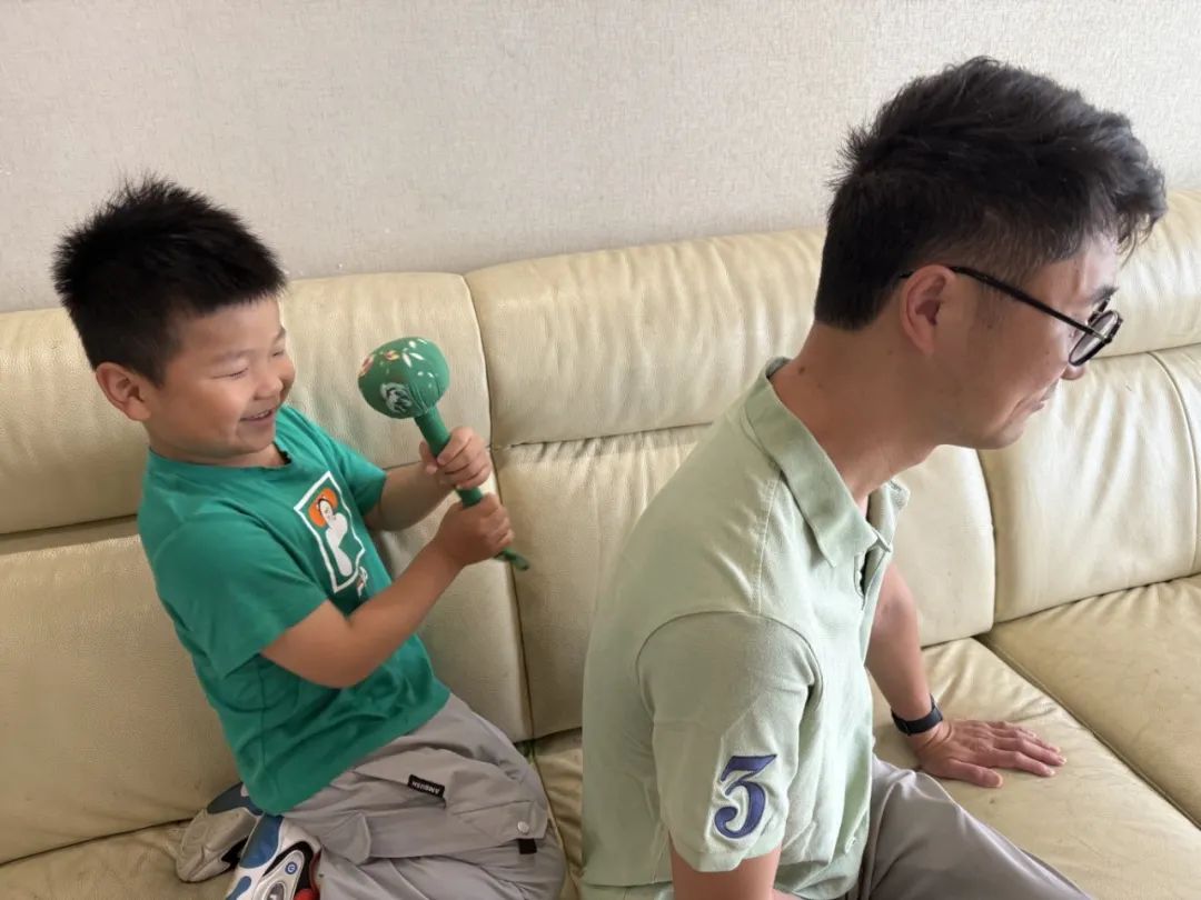 今天一进门就看到儿子有点害羞地要送我东西、说给我捶背,这和平时调皮的他有点不一样。虽然我表面上波澜不惊,但内心狂喜——我的儿子也懂事了。也希望在爸爸妈妈的陪伴下,儿子能健康开心地长大。