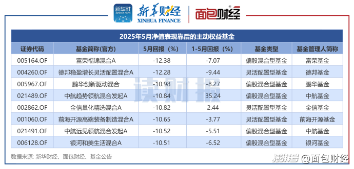 富荣基金、德邦基金等旗下8只主动权益基金5月净值下跌超过10%,表现相对落后。