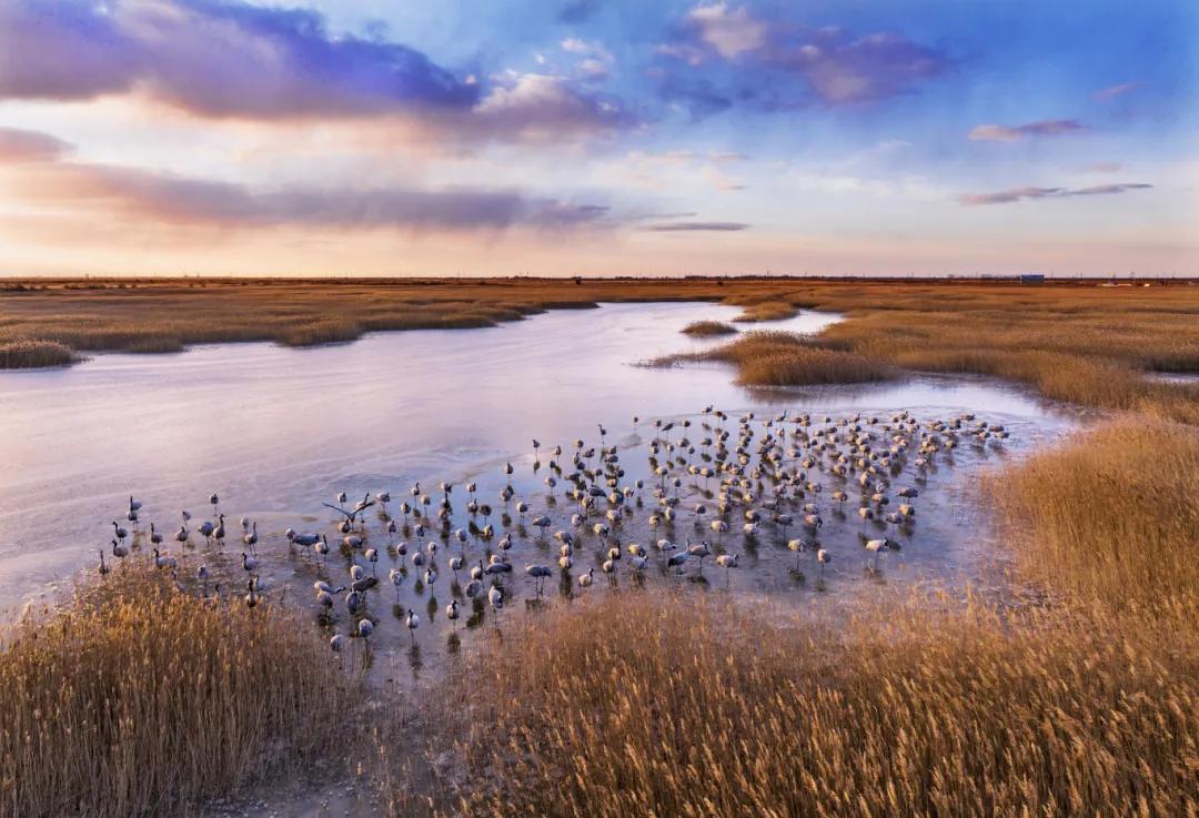 这里每年上演“鸟类大迁徙”奇观,数百种野生动物在此栖息,其中国家一级保护鸟类26种,是全球90%以上东方白鹳的繁殖地、70%丹顶鹤的越冬地。