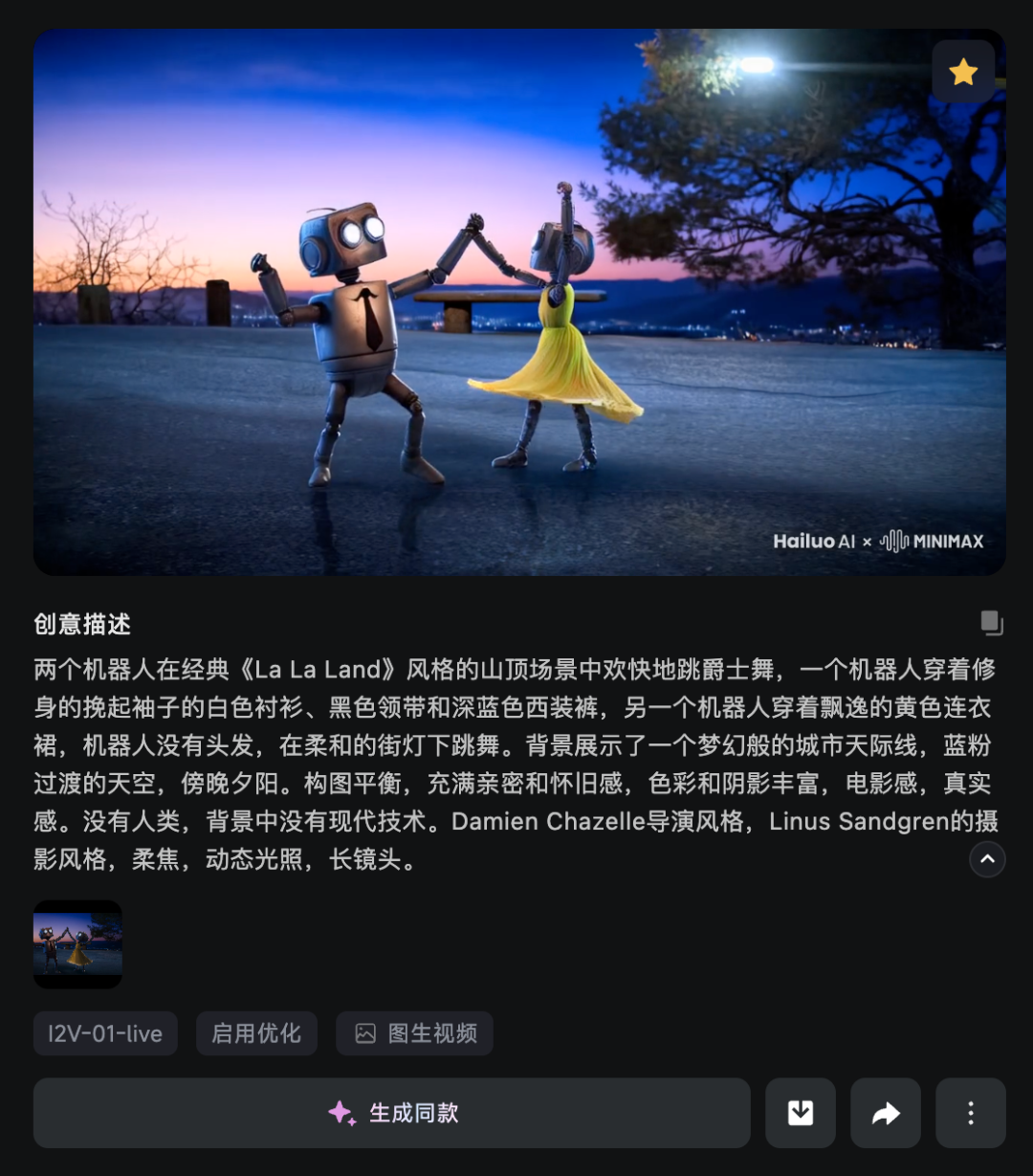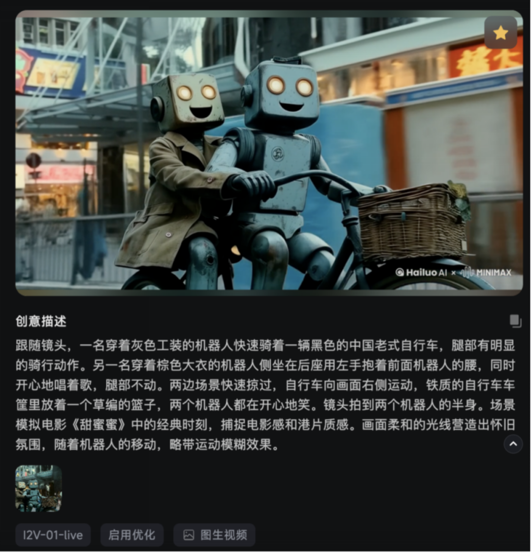 “我们发现【文生视频】比【图生视频】这方面更有优势,所以选用可实现流畅动态的海螺MiniMax模型。”