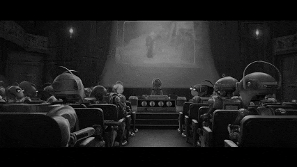 在本片的混剪段落中,随着画面由黑白变成彩色,画幅逐渐变宽,机器人之间的感情不断萌芽,这样的变化也契合着影史发展的轨迹。